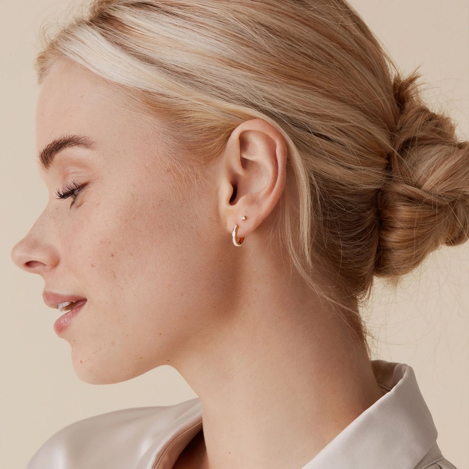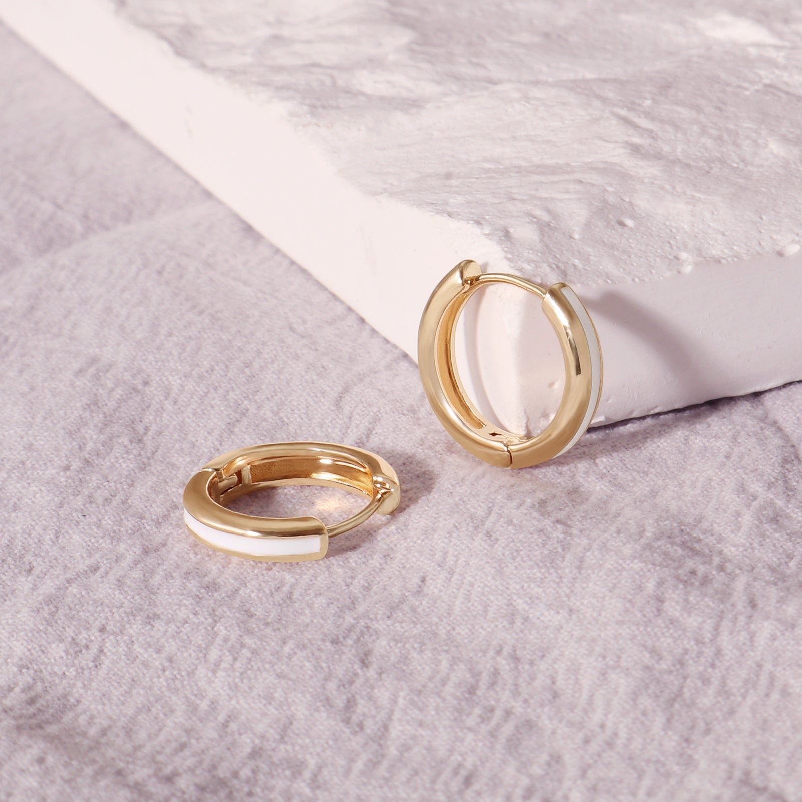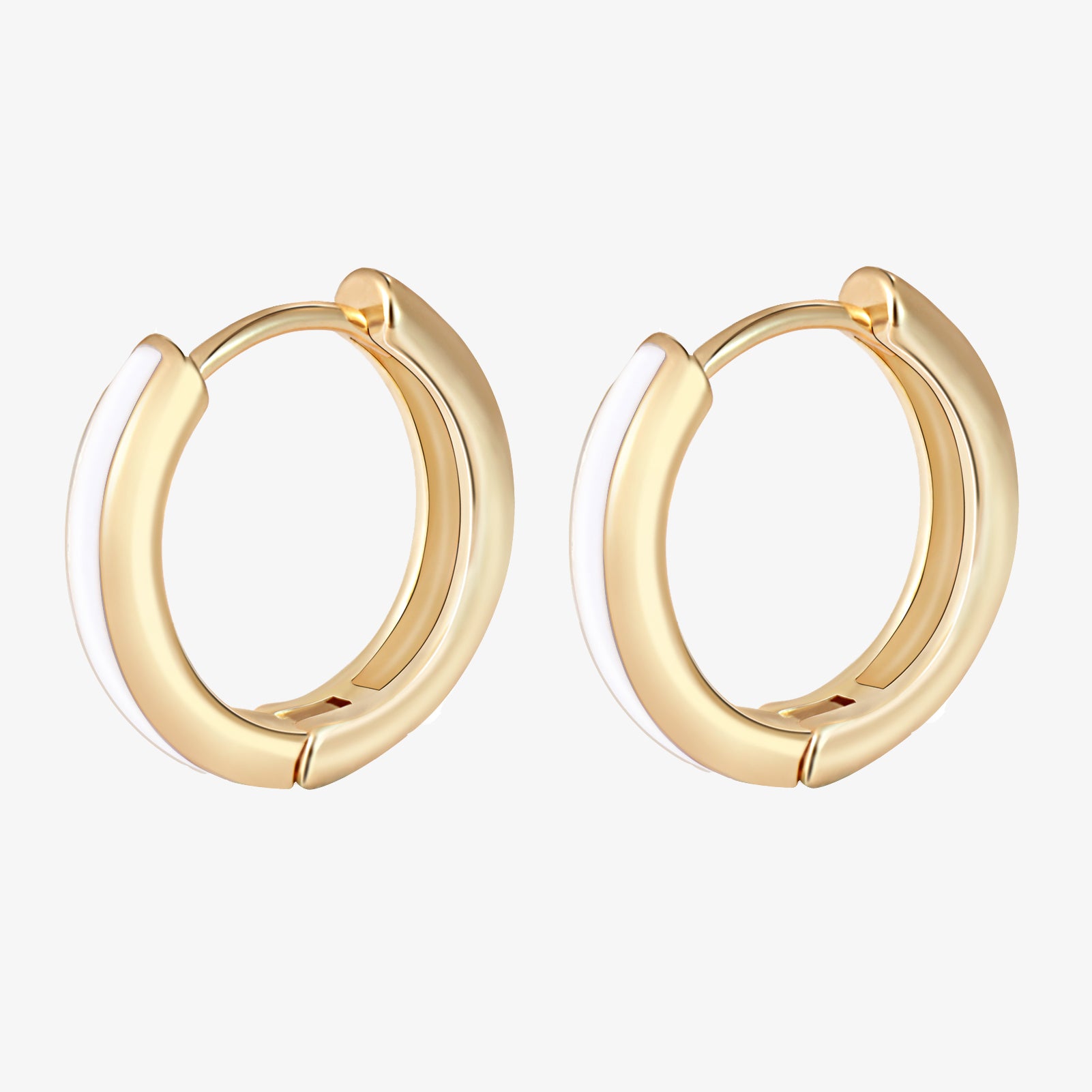 White Enamel Gold Huggie Earrings Gift for Her